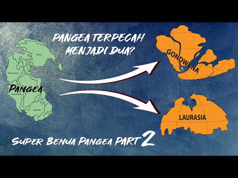 2. Seiring berjalannya waktu, oleh karena gerak lempeng Bumi dan faktor- faktor lain, benua Pangea terpecah menjadi dua yang dinamakan Laurasia (sebelah Utara) dan Gondwana (sebelah selatan). Proses terpecahnya benua Pangea ini trjadi sekitar 135 juta tahun yang lalu.
